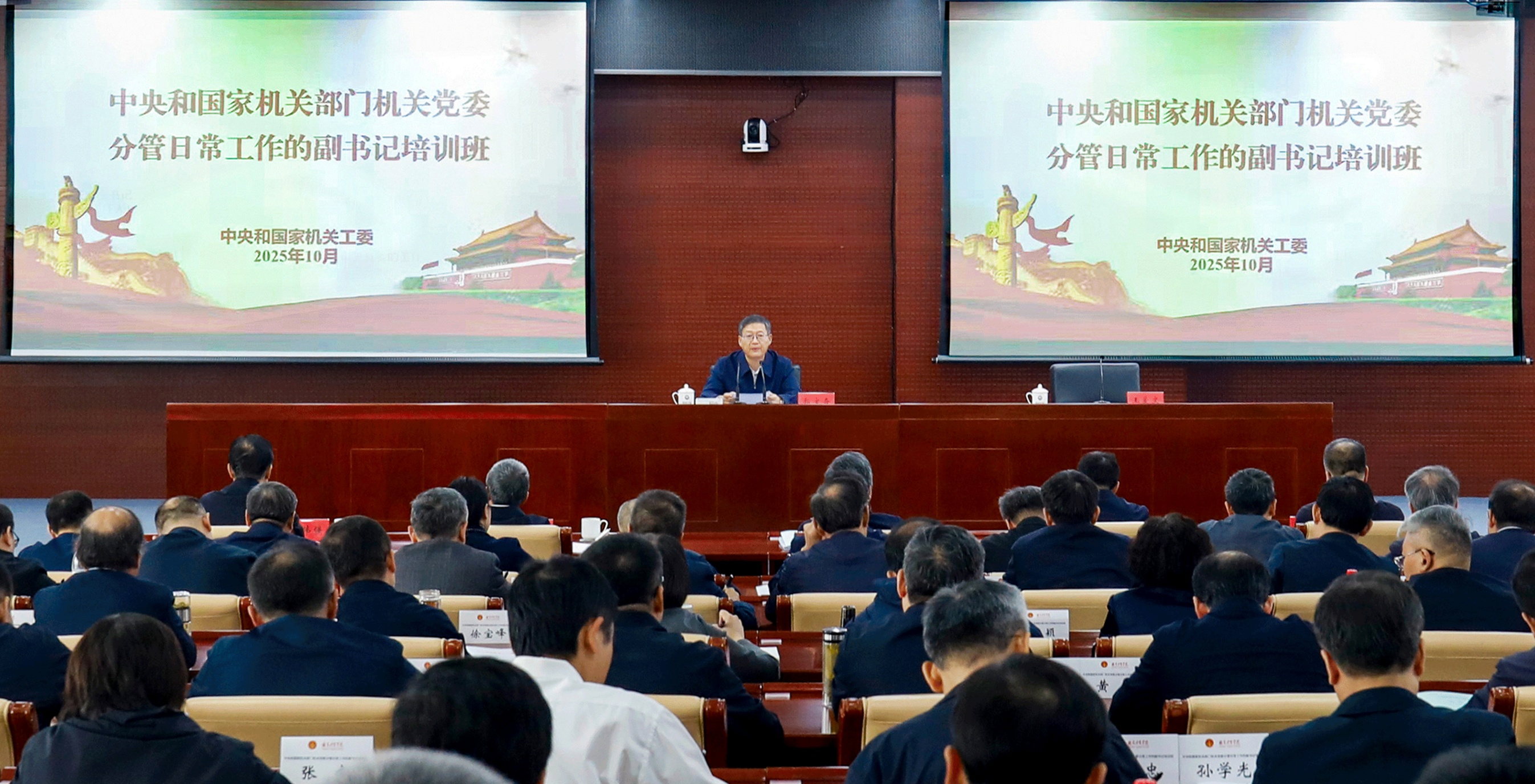 10月14日至16日,中央和國家機關(guān)工委舉辦中央和國家機關(guān)部門機關(guān)黨委分管日常工作的副書記培訓(xùn)班。培訓(xùn)班深入學(xué)習貫徹習近平總書記關(guān)于機關(guān)黨建的重要講話和重要指示精神,認真落實工委《關(guān)于加強中央和國家機關(guān)部門機關(guān)黨委建設(shè)的意見》(以下簡稱《意見》),推動部門機關(guān)黨委聚焦主責主業(yè),發(fā)揮職能作用在以高質(zhì)量黨建促進高質(zhì)量發(fā)展中展現(xiàn)新?lián)斝伦鳛?。工委分管日常工作的副書記郭文奇作開班動員暨專題輔導(dǎo)報告。中央組織部、中央和國家機關(guān)工委、中國紀檢監(jiān)察學(xué)院負責同志授課。工委領(lǐng)導(dǎo)班子成員出席,中央和國家機關(guān)部門及部門管理的國家局和有關(guān)部級單位機關(guān)黨委分管日常工作的副書記,工委各部門各單位主要負責同志共150余人參加培訓(xùn)。